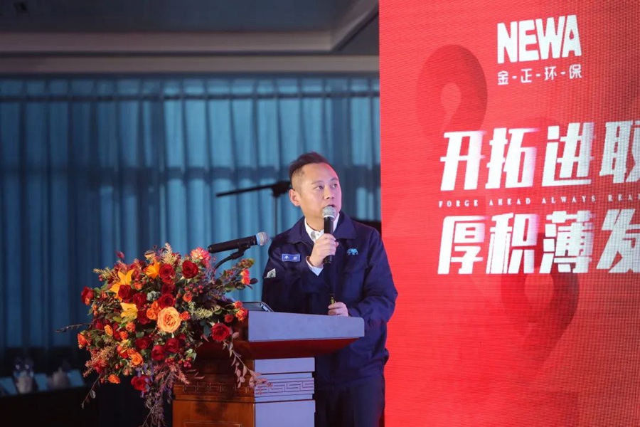 2021年是不平凡的一年,是收獲滿滿的一年。一部《金正2021年度大事記》視頻短片拉開了表彰大會的序幕。大事記短片以時間軸的方式展現了2021年全體金正人用拼搏和努力在污廢水處理行業取得的收獲與成果。